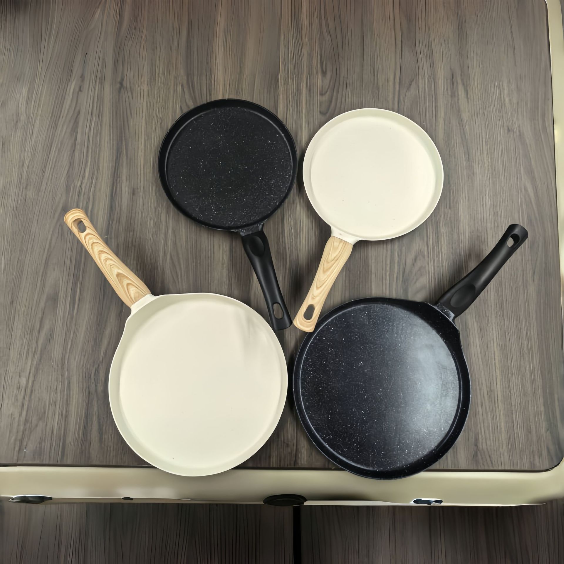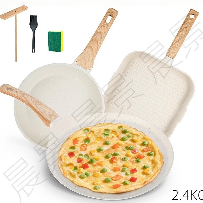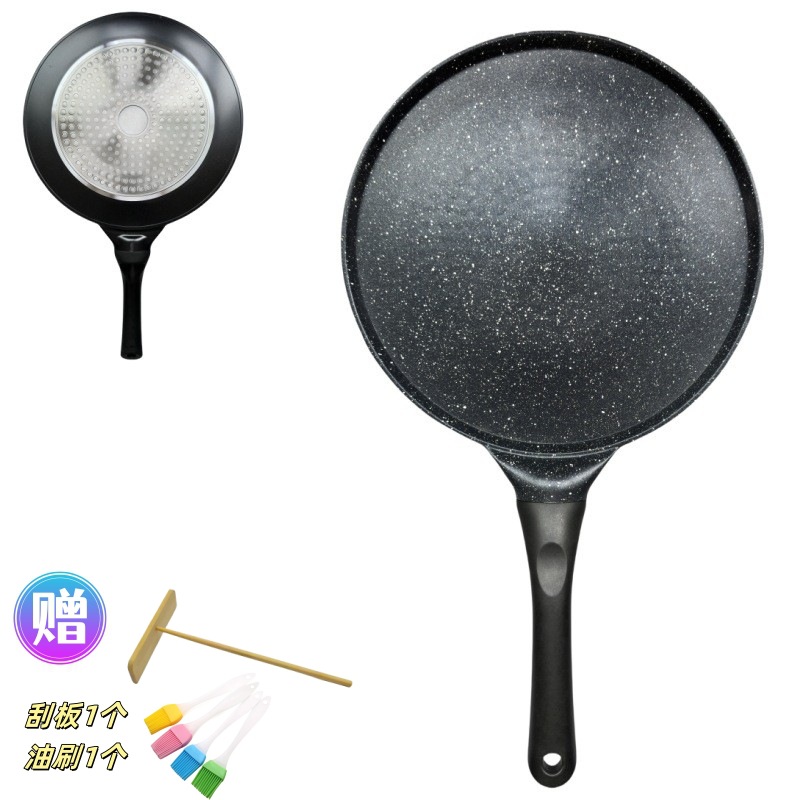 Features: Non-stick panMaterial: Medical stoneBottom material: CompositeColor: Black, BeigeElectric: NoDimensions: 26.50cm long x 25.50cm wide x 4cm highCompatible with: Induction cooktop